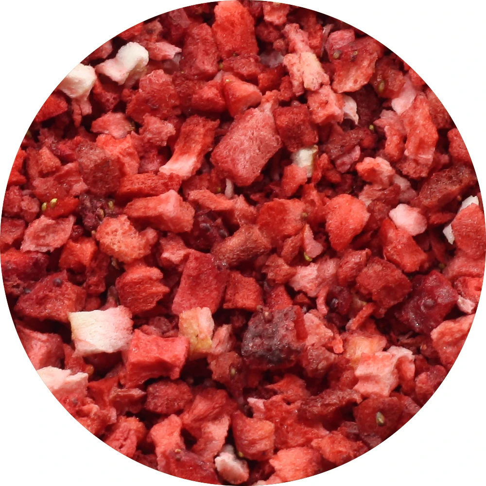 Клубника сублимированная, это ягоды, из которых удалена влага с помощью вакуума, данная технология позволяет сохранить вкус, цвет и 96% питательных веществ, приготовленные по этой технологии ягоды не содержат красителей, ароматизаторов, консервантов и подойдут для правильного питания. В отличие от свежих ягод сублимированные долго хранятся и доступны в любое время. Клубника имеет приятный запах, вкус и яркий цвет, подойдет для добавления в выпечку, крема, начинки, напитки.